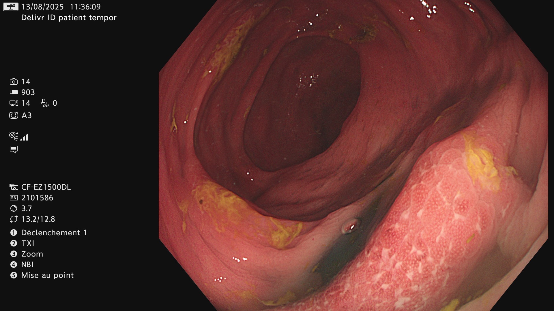 En endoscopie on constate aussi que la maladie garde des petites zones actives sur un colon qui semble presque cicatriciel.