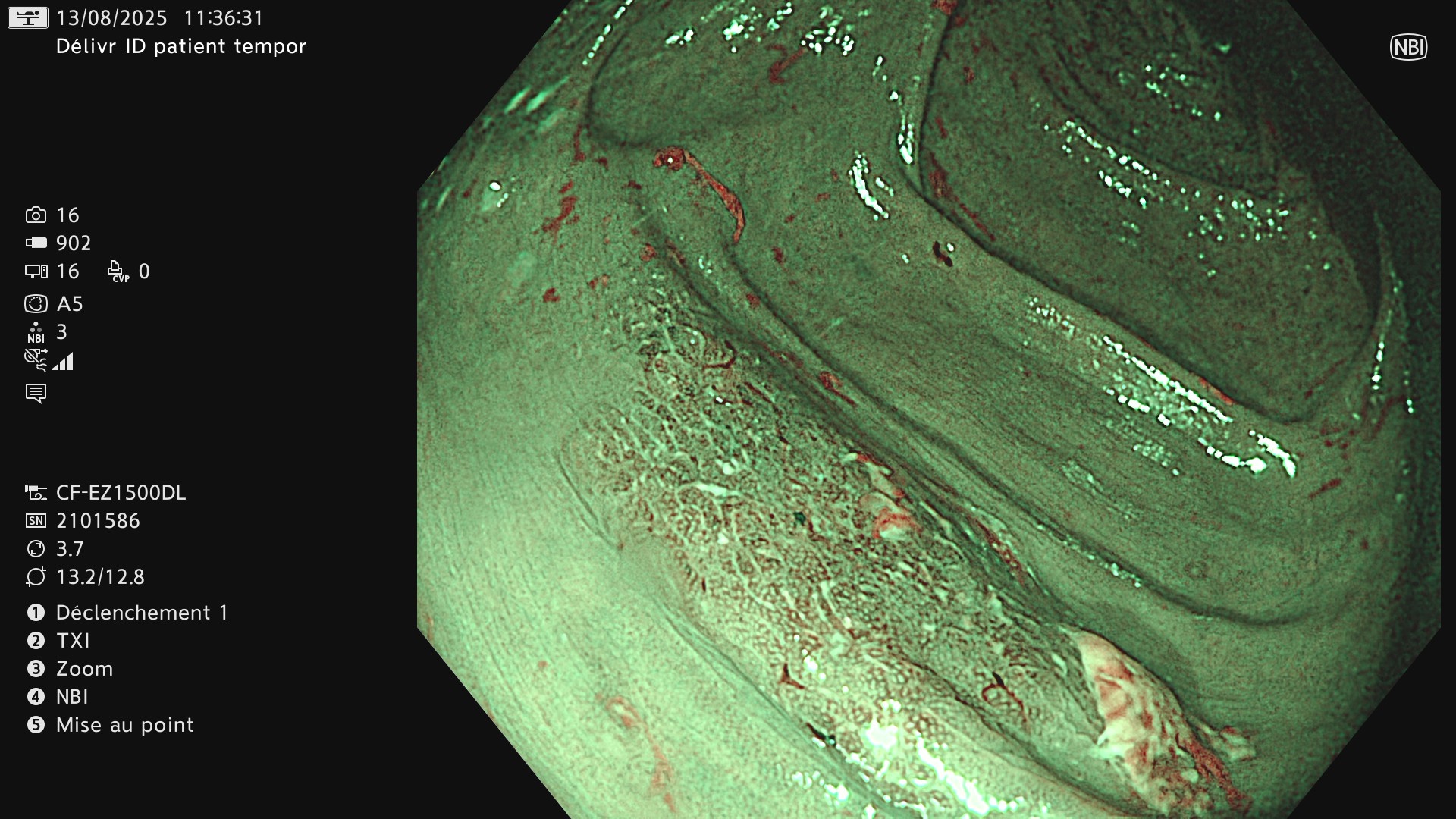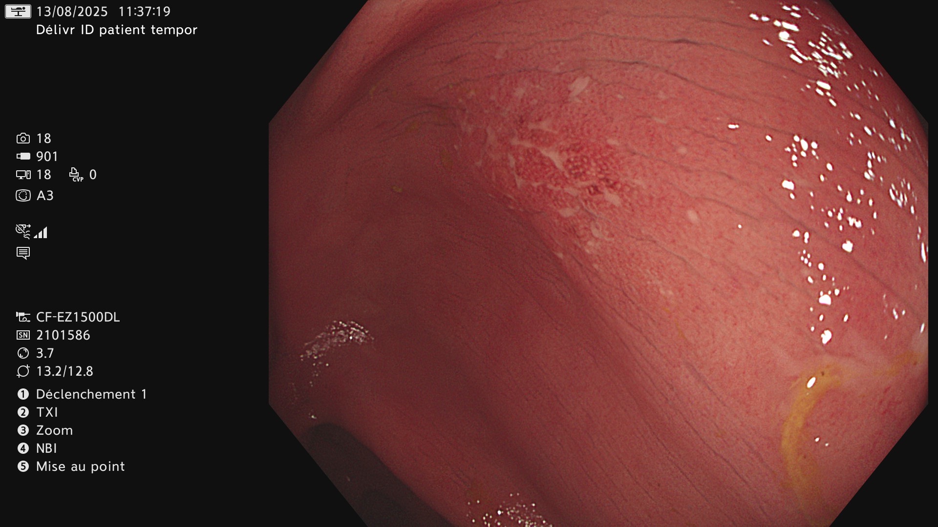 - Épaississement continu 4.5 mm, les couches sont respectées, la sous muqueuse fait >1/3 de la paroi