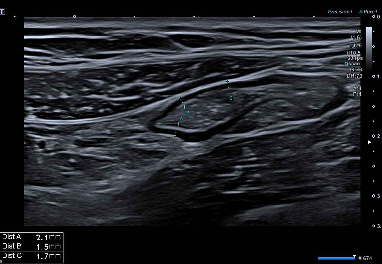 L’épaisseur pariétale est de 1,8 mm, structure en couche totalement rétablie, le Doppler est négatif, Limberg 0.