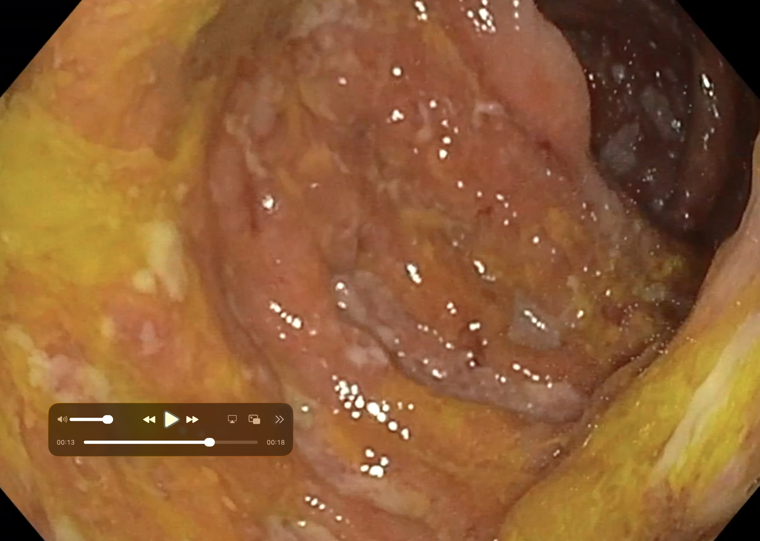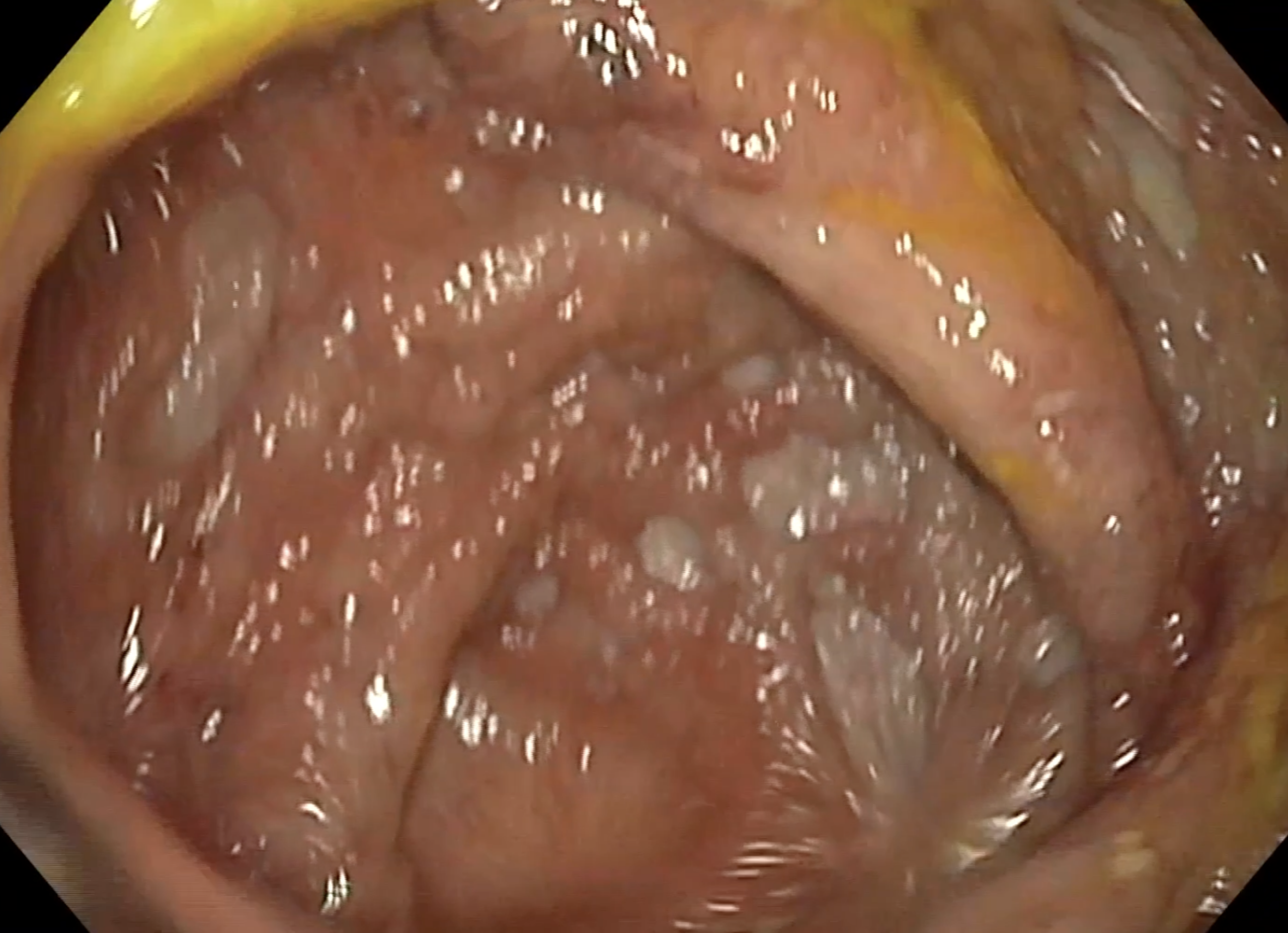 La paroi est redevenue strictement normale, rien ne permet de la différentier d’un colon sain.