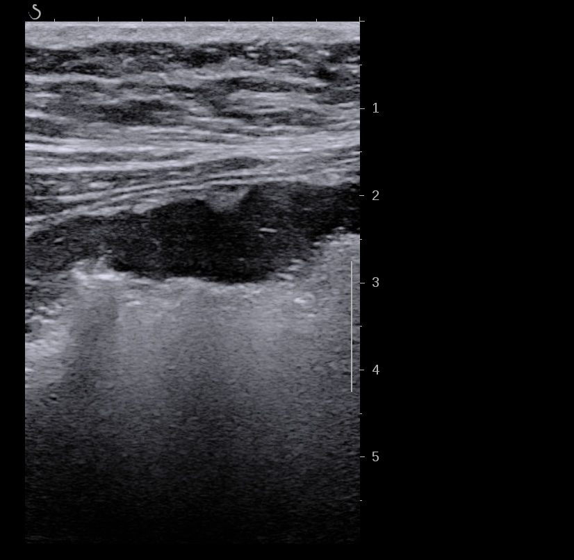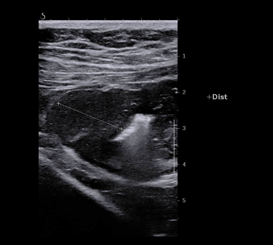 La récupération échographique peut être très rapide et on peut observer une restitution ad integrum de la paroi à distance.