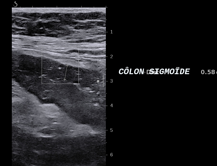Echographie: colite gauche 8 mm perte de la stratification et ulcère